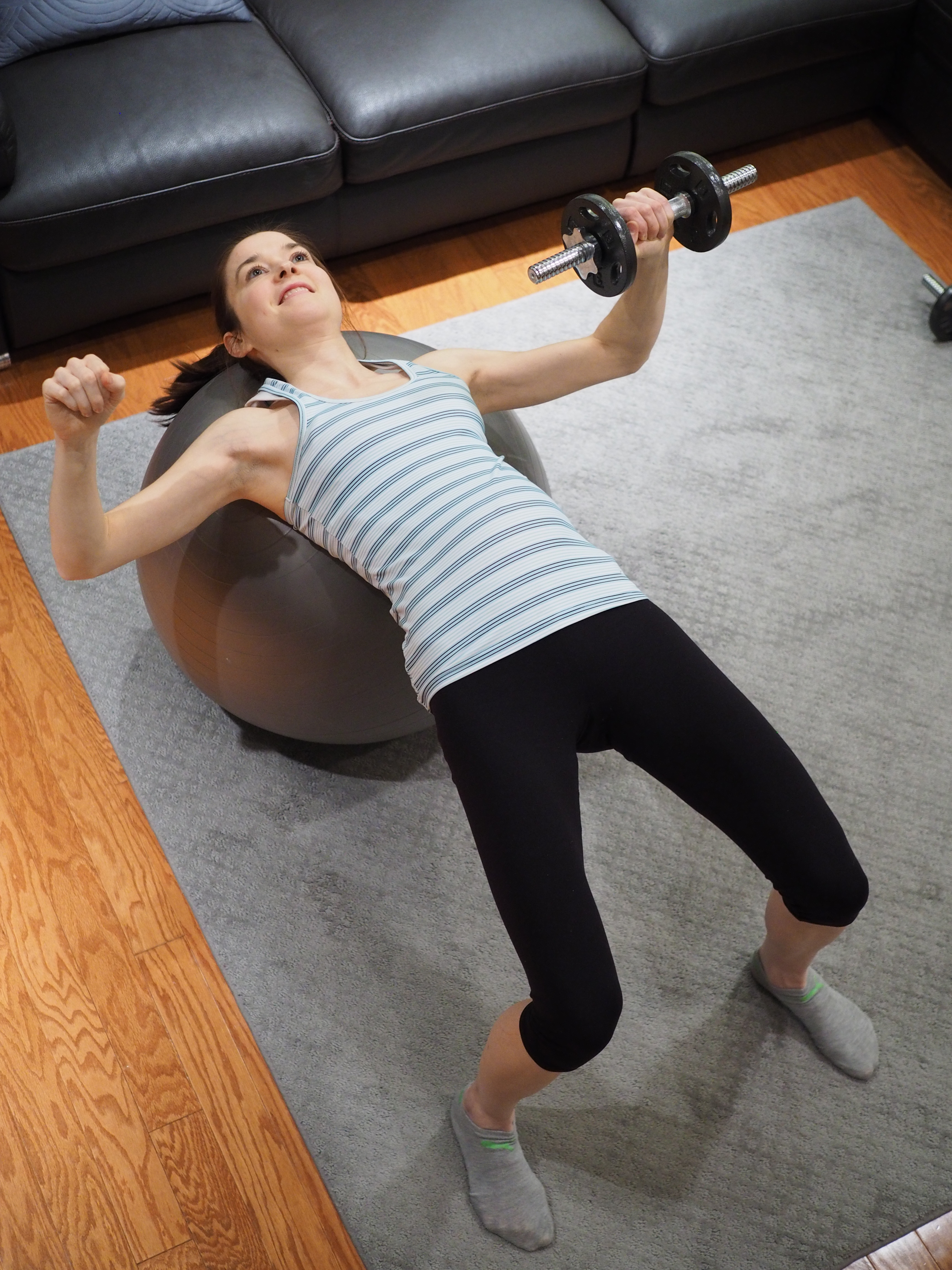 It’s a little hard to tell here, but I’m holding the dumbbell in one arm only.