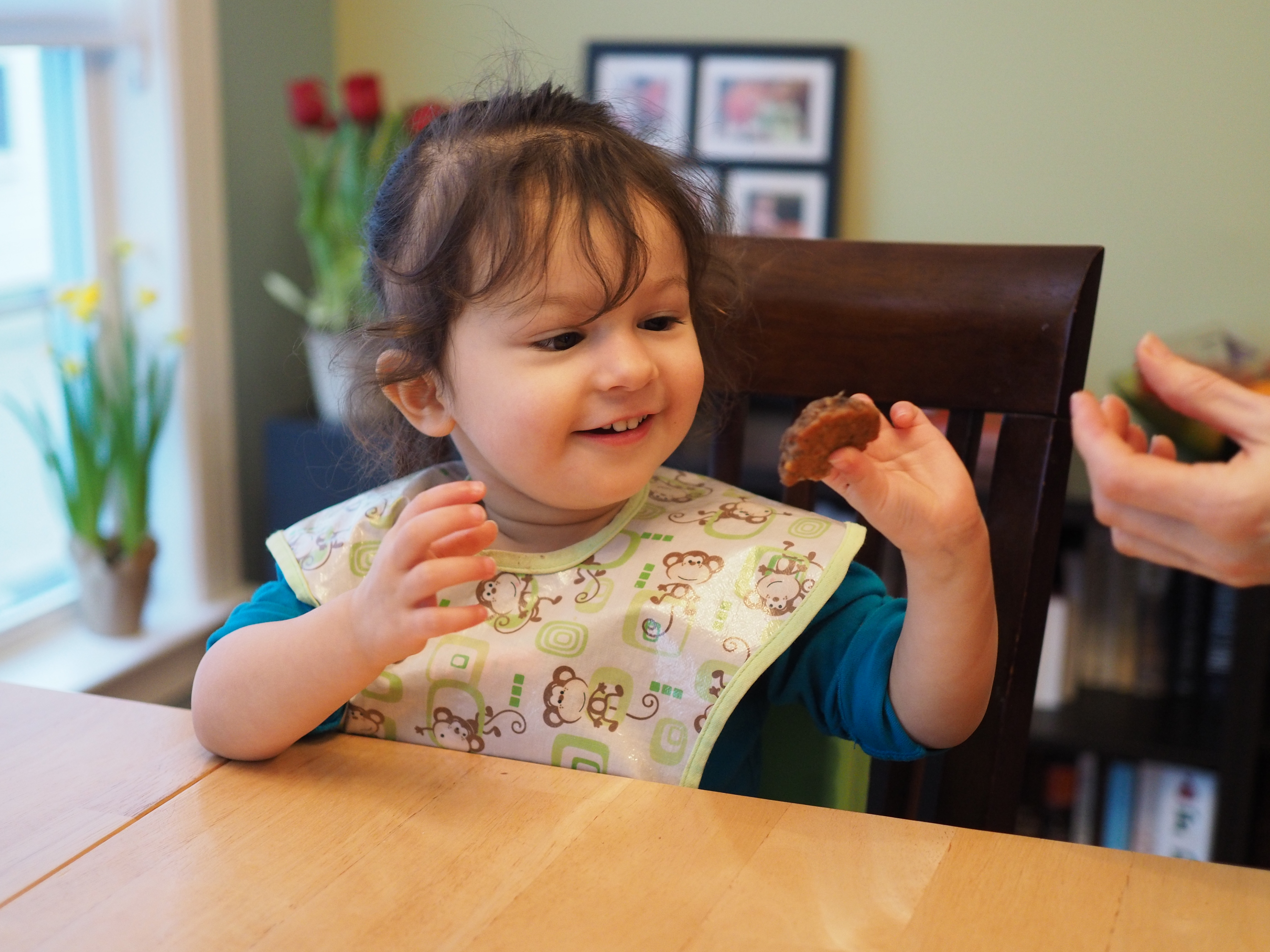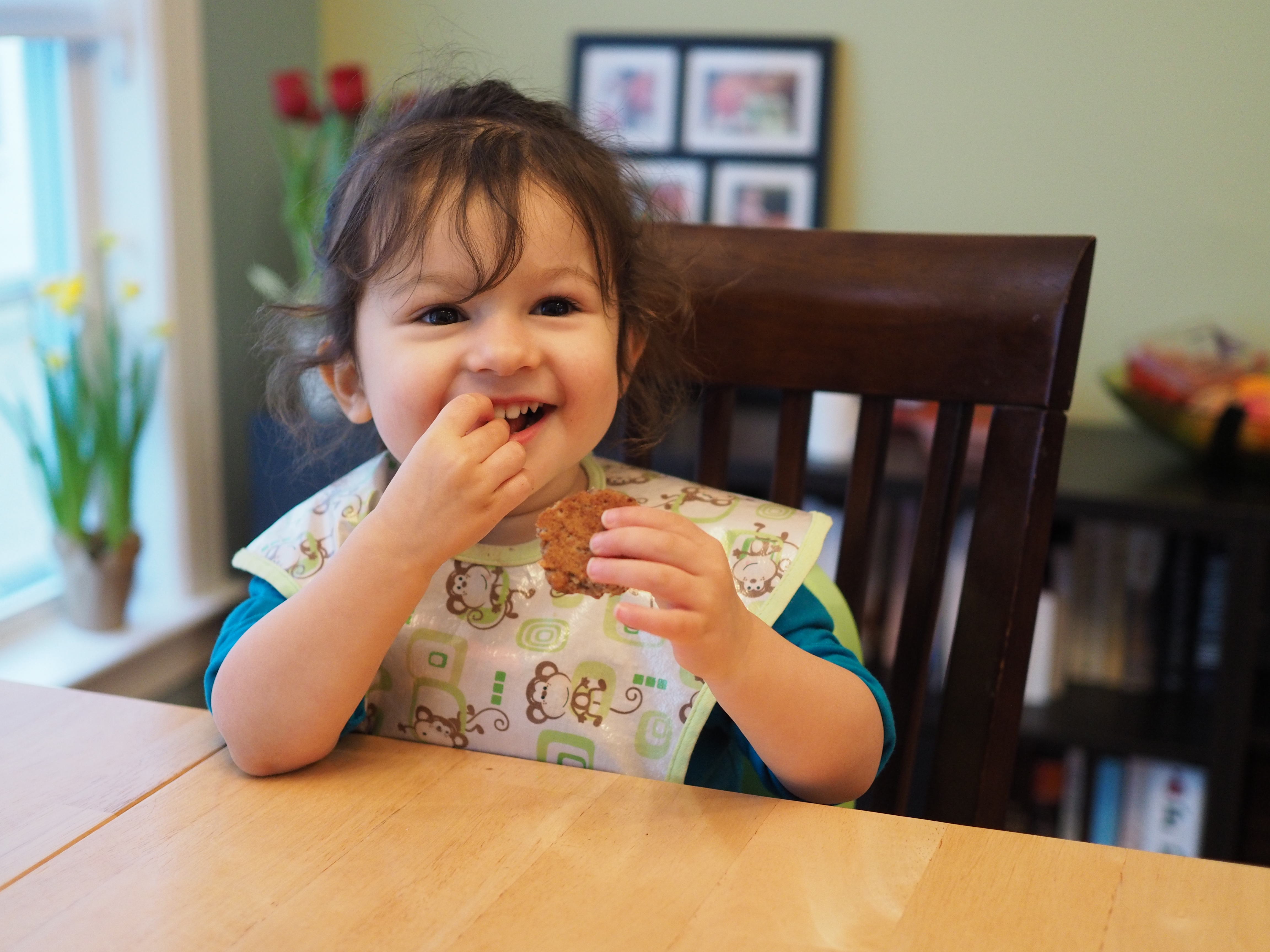Around my house we eat “cookies,” not cookies. They have just three ingredients, and they are very healthy. Now before you hang up with CPS and start dialing the Fun Police on me, let me also note that they are very tasty. At least I think so, and Siyona seems to agree.