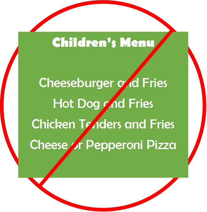 So change IS possible, but we don’t have to make it so hard. We can start our kids eating well when they are young. And that takes us back to the issue at hand. What do we do when menus like the one above greet us at restaurants, as they so often do? Here are five suggestions.